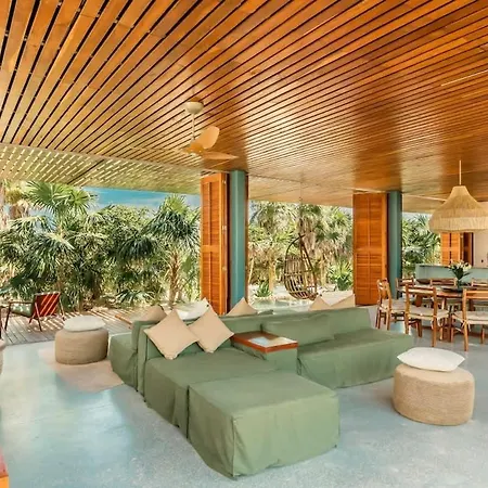 Dotata di un giardino privato con una piscina, la Design Awards Beach Villa With 4Br And Sky Pool sorge nel quartiere Hotelera. Questo stabilimento con 4 camere da letto vanta un patio e un giardino, mentre l'Arco Maya è a 10 minuti in auto.